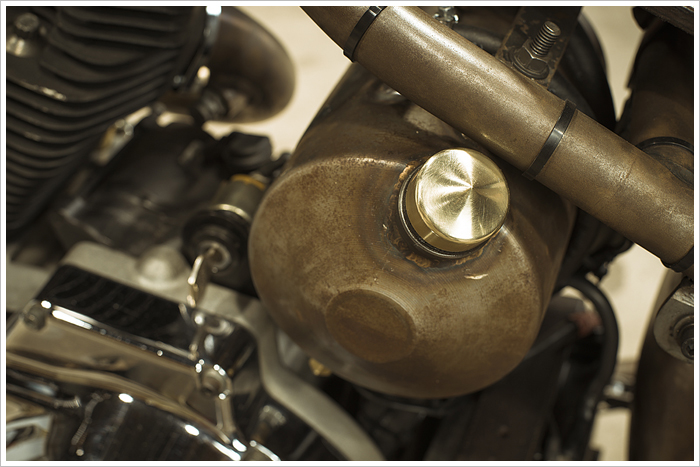 la piccolina nasce da un Ironhead malmessa, dove la DP ha dovuto rifare tutte le saldature del telaio e addirittura raddrizzandolo, il motore è stato completamente revisionato e dopo aver aggiunto una springa il motore è stato verniciato come anche coperchio camme, pignone, primaria e bilancieri tutti con un bel nero, molto bella la colorazione dei cerchi che richiamano perfettamente il logo della DP.